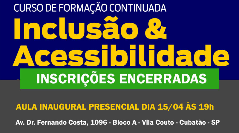 Read MoreInscrições Encerradas As inscrições para o curso Inclusão e Acessibilidade foram encerradas no dia 10 de abril de 2025, às