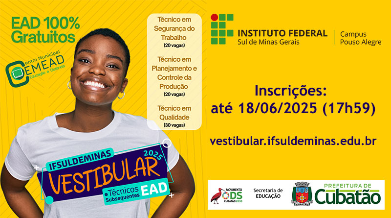 Read MorePela primeira vez, o município de Cubatão/SP recebe cursos técnicos gratuitos na modalidade Educação a Distância (EaD) oferecidos pelo Instituto Federal do Sul de Minas