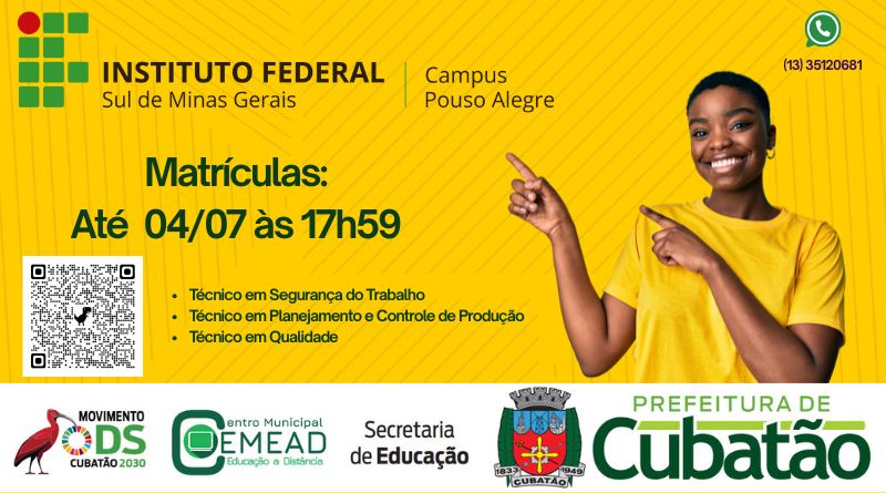 Read MorePela primeira vez, o município de Cubatão/SP recebe cursos técnicos gratuitos na modalidade Educação a Distância (EaD) oferecidos pelo Instituto Federal do Sul de Minas